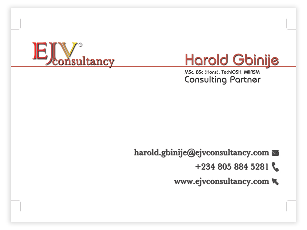 - A health & safety consultancy business card.